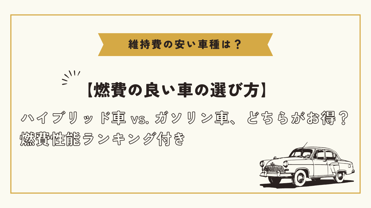 ファミリー層や学生の皆さんが、経済的で燃費の良い車を選び、家計を賢く管理できるよう、本記事を参考にしてみてください。